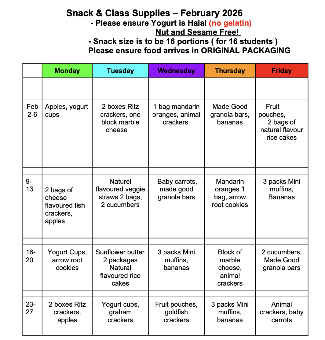 MONTHLY SNACK AND ACTIVITY SCHEDULES
